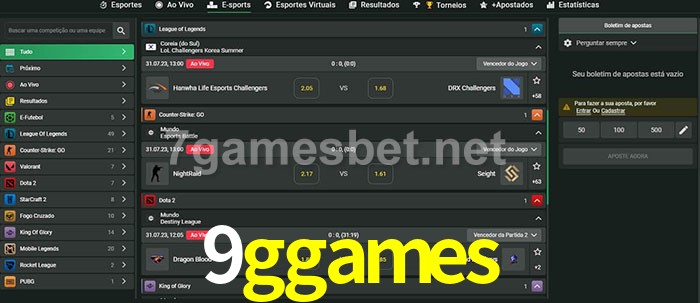 O 9ggames oferece uma grande seleção de opções de apostas em e-sports com probabilidades competitivas